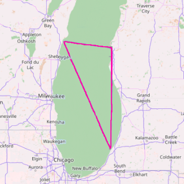 Witnessed a large silent triangular craft with three white lights at each corner and a red pulsing light in the center hovering over the water. Object made no sound and moved at impossible speed before vanishing instantly. Duration approximately four minutes total.